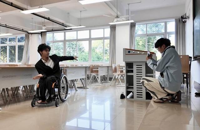 2025年,考入成都信息工程大学,开启了人生的新篇章。在入学前的假期,学校特意为他在食堂和宿舍搭建了无障碍斜坡,还给他安排了专门的寝室,而在这些具体的便利之外,更打动他的,是持续而细腻的关怀——后勤老师、辅导员、校领导,常来到他宿舍,询问生活起居,关心适应情况。一句句叮嘱,一次次探望,都化作了校园里最暖的光。