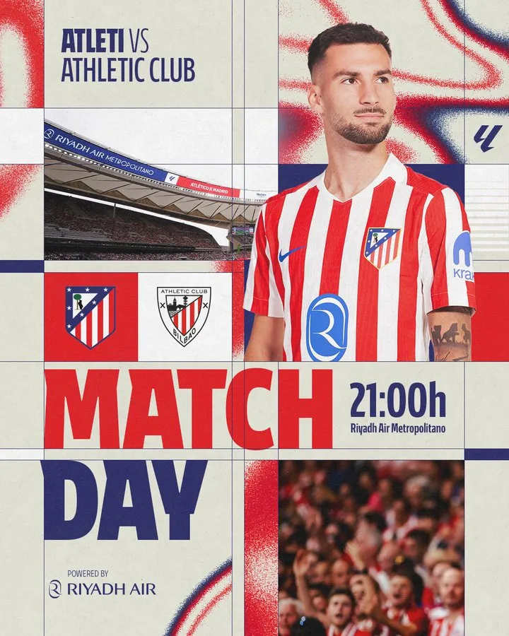 虎扑04月26日讯 西甲第32轮,马德里竞技主场迎战毕尔巴鄂竞技,赛前双方公布首发名单: